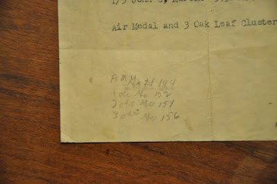 *Detalhe: normalmente os critérios para a concessão desta medalha neste caso deste aeronauta eram por cem (100) voos operacionais durante o qual não se espera que a exposição ao fogo inimigo o soldado receberia uma "Air Medal" ou um "OLC" (folha de carvalho) para colocar na fita da medalha, mas no CBI os pilotos e tripulações tinham critérios mais elevados.