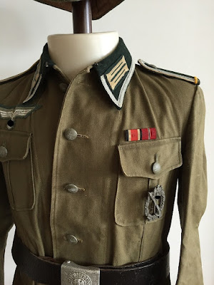 Nas imagens abaixo dá para ver as marcações antigas do uniforme que anteriormente foi confeccionado para o Exército Francês antes de 1940 e foi aproveitado pelo Exército Alemão quando as cadeias de suprimentos foram afetadas pela constante destruição das fábricas na Alemanha e países ocupados pelas Forças Aéreas Aliadas.