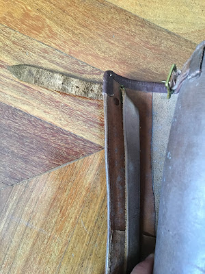 Acima esta um rede protetora contra mosquitos do modelo tropical francês da década de 1950. Isso foi projetado como uma capa do capacete de aço, mas também se encaixa no capacete solar do modelo 1931.