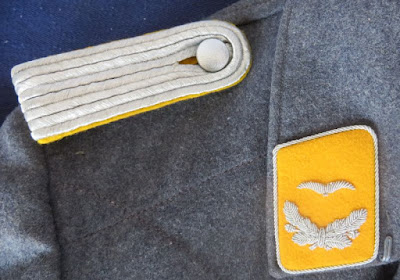 As insígnias dos colarinhos eram usados em pares e indicavam o ramo de serviço e posto. Os diferentes ramos de serviço da Luftwaffe foram alocados em cores específicas para Waffenfarbe (ramo de serviço em cores). Amarelo dourado sendo para o pessoal servindo em unidades "Flieger" (de voo) ou "Fallschirmjäger' (paraquedistas).