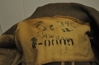 O casaco esta em perfeitas condições para um item com mais de 70 anos e mostra sinal de uso, bem como marcações do número de série do soldado e de lavanderia no interior no forro.