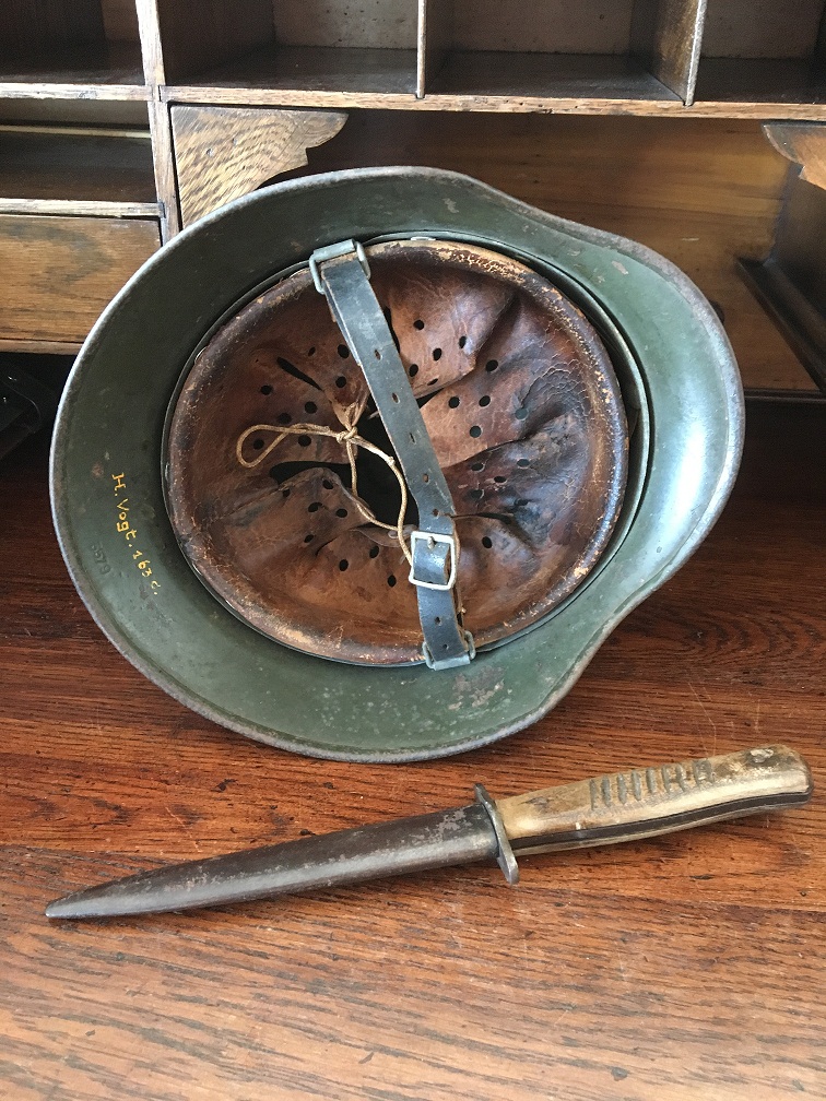 As bainhas foram feitas basicamente em duas formas. A primeira tem uma ponta de nariz redonda ou focinho e a segunda, uma ponta mais pontiaguda. Ambos os tipos foram utilizados durante o período. Estas bainhas foram montadas com um ou dois forros de metal de mola, a fim de manter a lâmina segura durante o uso. Estas molas foram mantidas no lugar por um rebite em cada lado. O primeiro rebite que eu já mencionei e o segundo rebite atravessou o couro do gancho, a parte traseira da bainha e finalmente fixou o forro traseiro. Um pequeno truque que os falsificadores não captaram ainda é que muitos desses forros foram cobertos com um algodão grosseiro. Os revestimentos sem este algodão são vistos frequentemente em exemplos originais, entretanto, eu nunca vi um reprodução com este algodão assim que é um bom sinal de um original. Olhe para o suporte de couro e tenha em mente que estas facas possuem 80 anos e, como tal, deve mostrar algum desgaste natural e idade. Ter cheiro de couro após mais de 80 anos indica uma reprodução porque couro velho não cheira. Se o couro cheira novo, questione-o. Olhe para o botão de pressão. Muitas vezes os originais exibem padrões interessantes e deve parecer usado.